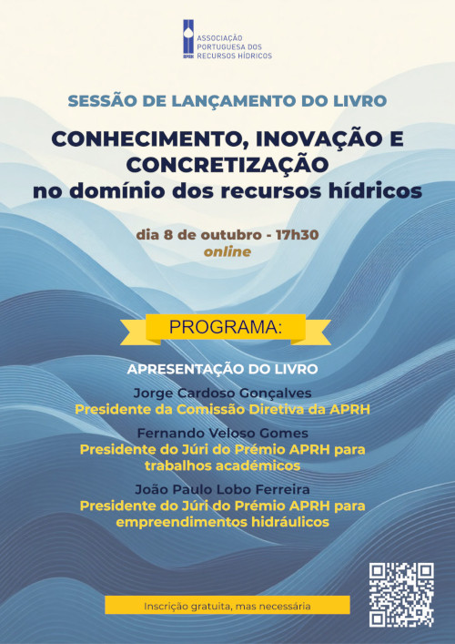 Sessão de lançamento do livro CONHECIMENTO, INOVAÇÃO E CONCRETIZAÇÃO no domínio dos recursos hídricos 8 de outubro – 17h30 | online