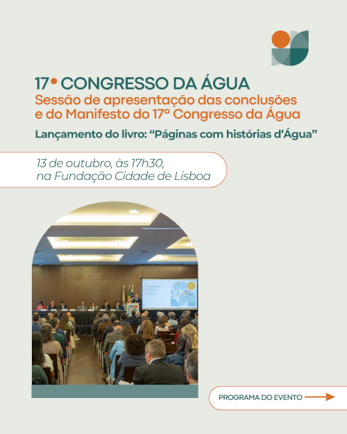 Dia Nacional da Água No Dia Nacional da Água, partilhamos convosco uma mensagem do Presidente da APRH. Nesta breve intervenção é realçado o papel da Associação na promoção do diálogo e da ação em torno dos grandes desafios da água, com destaque para o 17.º Congresso da Água e para o Manifesto “Ação Rumo à Sustentabilidade”, que será apresentado no próximo dia 13 de outubro, na Fundação Cidade de Lisboa.