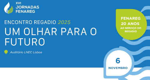 XVI Jornadas FENAREG: Encontro do Regadio 2025 – 6 de novembro – Lisboa A FENAREG – Federação Nacional de Regantes de Portugal está a organizar o Encontro do Regadio 2025 – XVI Jornada da FENAREG, este ano integrado nas comemorações dos 20 anos da FENAREG ao serviço do regadio. O evento irá decorrer no dia 06 de novembro, no Auditório do LNEC, em Lisboa. Esta edição terá como foco três temas centrais que definem o futuro do setor e de suporte à modernização e competitividade do regadio: a Estratégia “Água que Une”, enquanto estratégia de gestão integrada e de financiamento do regadio ate 2030; a Estratégia de Resiliência Hídrica; e a Política Agrícola Comum (PAC).