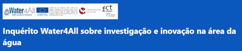 Pedido de divulgação de 'Inquérito Water4All sobre investigação e inovação na área da água' No âmbito das atividades da Parceria Europeia Water4All, vimos por este meio convidá-lo(a) a participar no preenchimento de um questionário sobre investigação e inovação na área da água, disponível aqui, e que tem como principal objetivo recolher a opinião das partes interessadas sobre vários temas abordados pelo programa para a elaboração da Estratégia de Investigação e Inovação deste consórcio. Este questionário estará disponível para participação até ao dia 23 de fevereiro de 2026, pelo que agradecemos o seu preenchimento tão breve quanto possível. Os dados recolhidos através deste inquérito serão fundamentais para identificar prioridades de investigação e inovação bem como desafios existentes relacionados com a água em Portugal. Estas informações serão igualmente integradas na versão atualizada da Agenda de Investigação e Inovação do Water4All. Os resultados do inquérito serão apresentados numa sessão pública a realizar no dia 16 de Abril, nas instalações da Fundação para a Ciência e a Tecnologia, I.P. (FCT). Informações sobre o programa e processo de inscrição serão oportunamente divulgados. O seu contributo é extremamente importante para garantir que esta agenda reflita de forma adequada as necessidades e perspetivas dos diferentes intervenientes nacionais a nível Europeu.